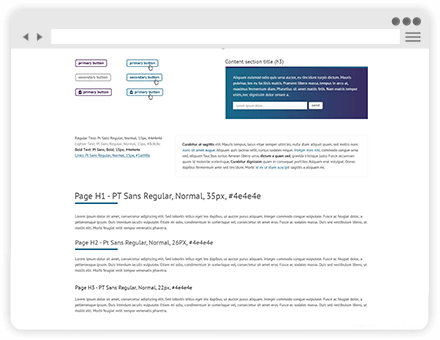 Pour ce projet, l'idée était d'offrir une charte graphique épurée et facile d'accès : une police de caractère facilitant la lisibilité, effets au survol plus standard. La dominance du bleu se veut faire rappel aux couleurs du logo.