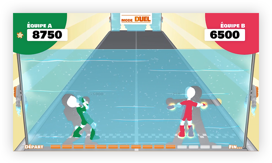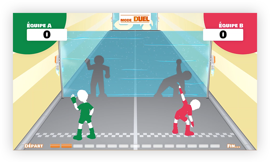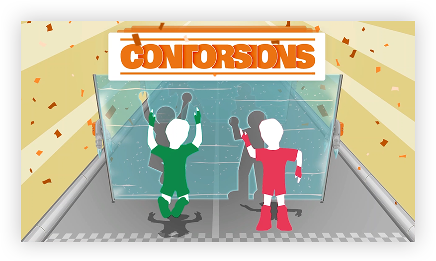Quoi de mieux pour les enfants qu'un jeu où on peut se tordre dans tous les sens? Avec l'aventure Contorsions, deux joueurs à la fois peuvent se mesurer l'un à l'autre dans un concours d'adresses et de rapidité. Sur l'écran projecteur de la TOUCAN, une succession de murs troués défilent à grande vitesse. Il faut rester à l'affût pour réagir et adopter la posture appropriée dans les délais.