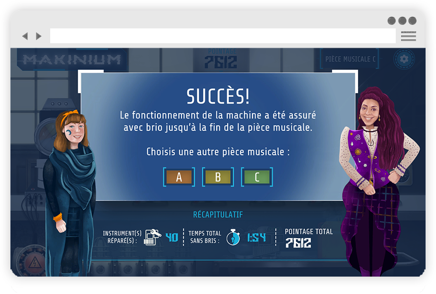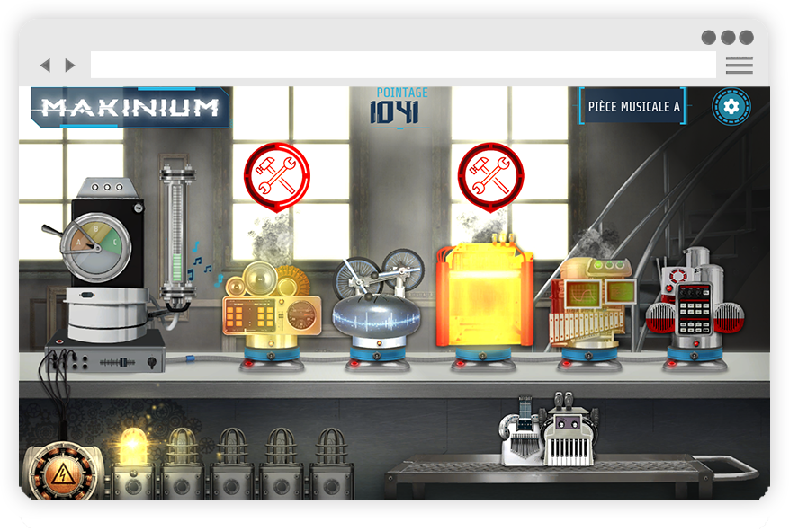 Un total de 7 instruments de musiques différents ont été conceptualisés à partir d'objets et de pièces de notre quotidien, car le monde de Makinium s'est bâti en recyclant toutes sortes de déchets et matériaux inutilisés.