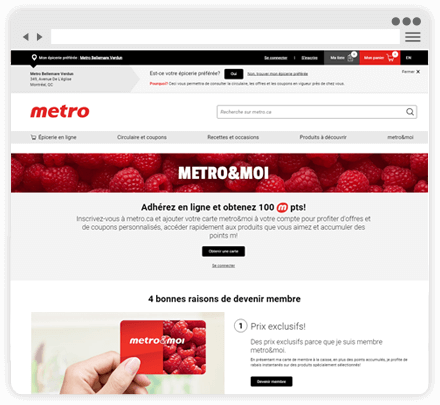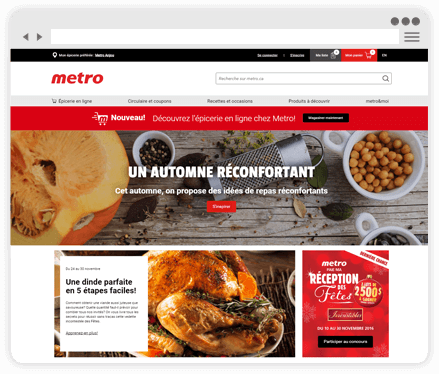 Metro inc. est un chef de file dans la distribution alimentaire et pharmaceutique au Québec et en Ontario. Que se soit par des concours saisonniers, de l'autopromotion ou des rabais en circulaire, la mise à jour du site permet de mousser les ventes et d'accueillir de nouveaux clients chez metro chaque semaine.