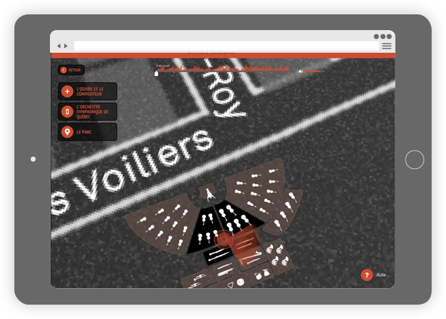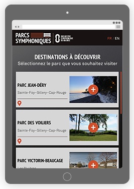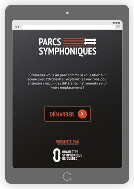 Pour les friands de musique symphonique, l'application mobile des Parcs Symphoniques propose une expérience de réalité augmentée inédite. Dix parcs de la ville de Québec ont été sélectionnés pour permettre aux utilisateurs d'étudier l'OSQ en pleine action. En se déplaçant parmi les différentes familles d'instruments, l'utilisateur peut ainsi décortiquer de nombreuses symphonies célèbres comme s'il était le chef d'orchestre en personne.