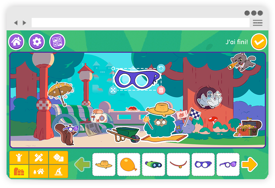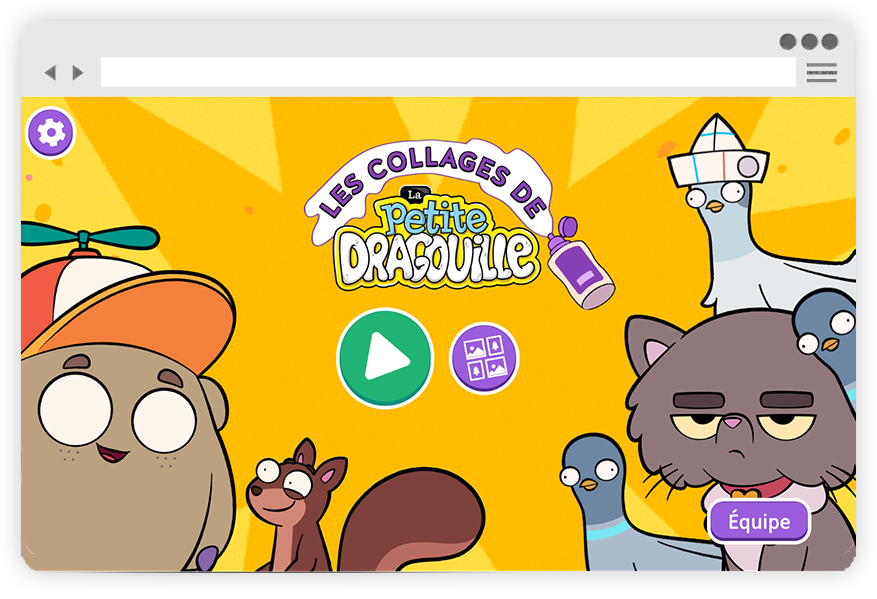 Pour ce projet, j'ai dû assembler une tonne d'éléments graphiques provenant de la série Petite Dragouille et d'en faire un tout cohérent et fonctionnel. L'intégration dans une interface jeu crée sur mesure à permis de transformer ce concept très simple en un véritable atelier créatif.